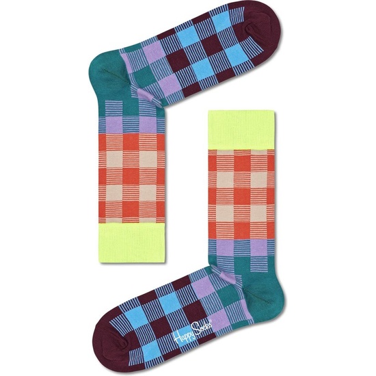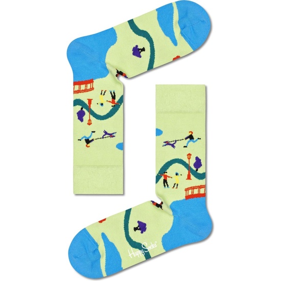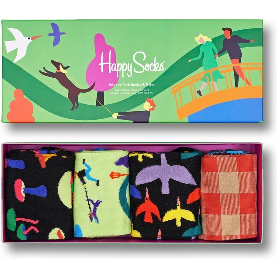 4 Pares de meias longas com estampas diferenciadas para melhorar seu look com um tecido macio As meias Happy Socks do momento! Estas meias são muito populares graças aos seus estampados originais e de alta qualidade. Par de meias coloridas com desenhos de vários modelos para o parque.