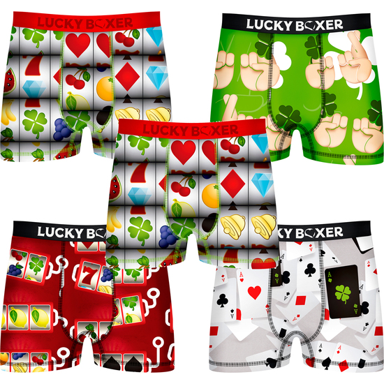 Conjunto de 5 cuecas boxer da marca Lucky Boxer.