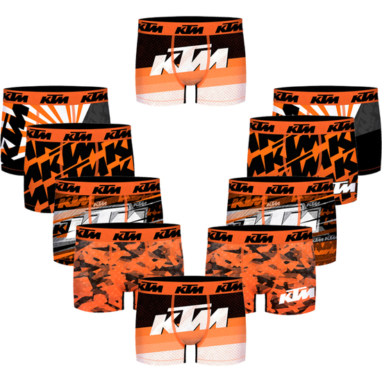 Conjunto de 10 cuecas boxer impressas da marca KTM.