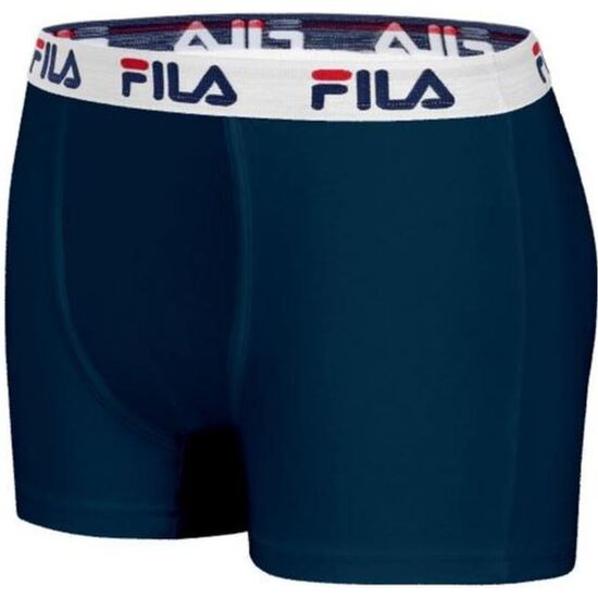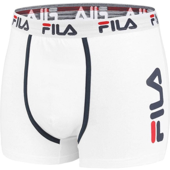 Conjunto de 4 cuecas boxer da marca Fila Em várias cores: branco e azul marinho. Com fita colorida com logo.