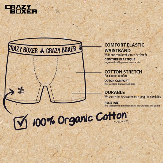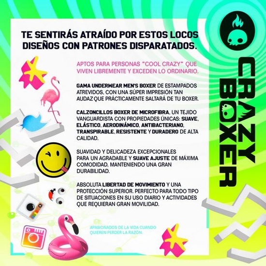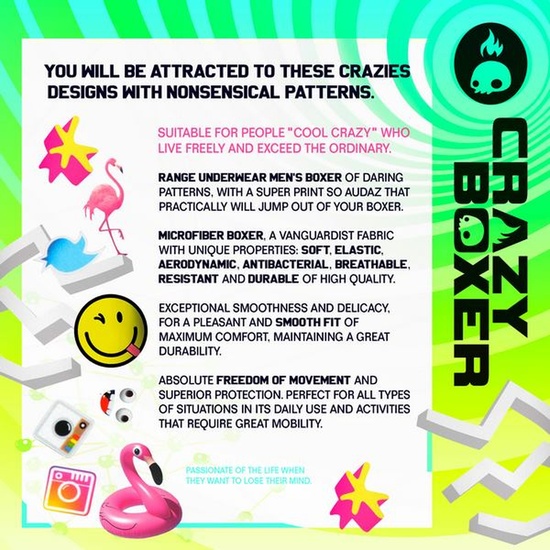 Conjunto de 2 Boxers Crazy BoxerImpressão por sublimação: as cores do desenho misturam-se com o tecido, por isso não desbotam. Boxers confeccionados em algodão: Ajuste, conforto e durabilidade, proporcionando leveza e com a resistência e elasticidade do elastano, que lhe proporciona. a ajustabilidade necessária Máxima proteção e ótimo conforto, com a suavidade do tecido de algodão. Com costuras planas para um conforto perfeito. Cinturas elásticas com logotipo impresso.