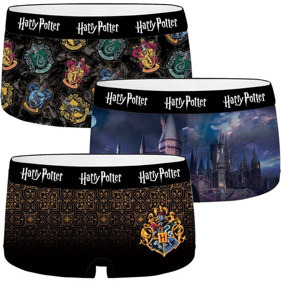 Conjunto de 3 shorts femininos variados da coleção Harry Potter licenciados pela marca FREEGUNI Impressão por sublimação: as cores do design se misturam com o tecido, portanto não desbotam. Boxers confeccionados em poliéster: ajuste, conforto e durabilidade, proporcionando leveza. e com a resistência e elasticidade das fibras sintéticas. O elastano proporciona a ajustabilidade necessária. Máxima proteção e ótimo conforto, com a suavidade do tecido sintético. Com costuras planas para um conforto perfeito. Cinturas elásticas com logotipo impresso.