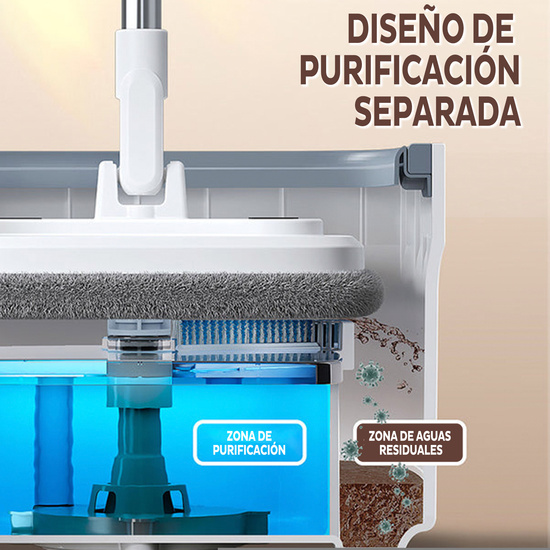 - Esfregão autolimpante mãos-livres: O esfregão de separação de água limpa e suja permite que você molhe e seque seu esfregue facilmente, mantenha as mãos longe da sujeira e limpe com mais eficácia.